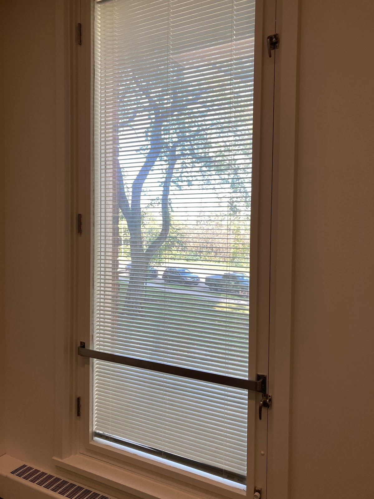 That's more like it!All done! Good news! But...but wait. I noticed something. I stepped closer. I peered at my blinds. My old, unchanged, not updated blinds. Oh, they'll be replaced "at some point." So, some bad news after all.